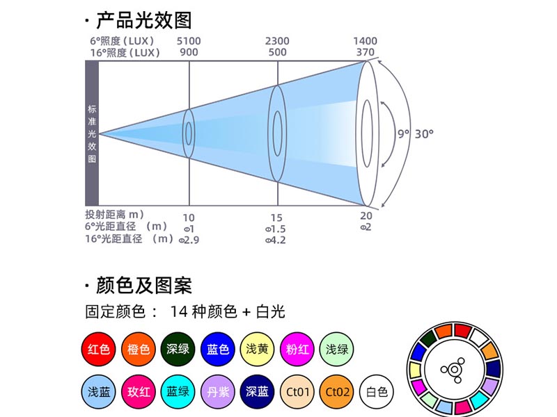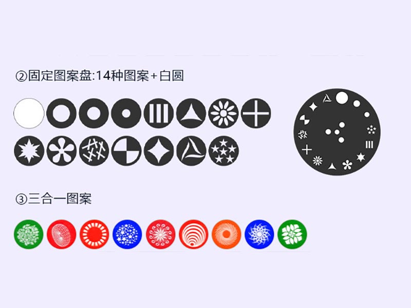 丰富图案效果:内置多种图案片和旋转图案,可投射复杂的光影效果,满足创意需求。